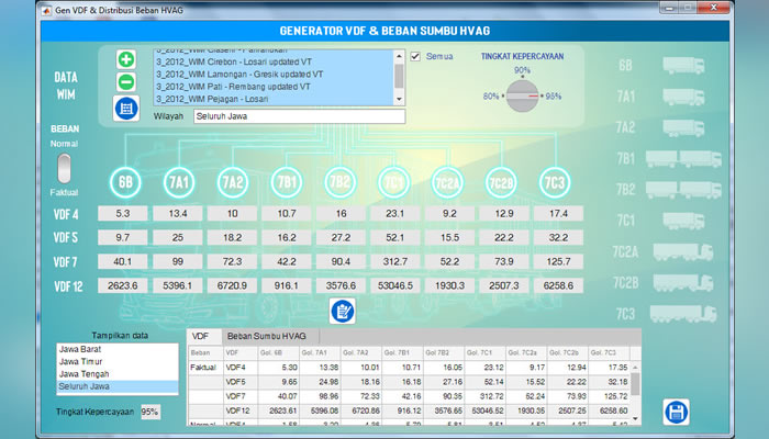 Software perhitungan dan analisis Indeks Kondisi Perkerasan (IKP) untuk penilaian kondisi perkerasan jalan berdasarkan jenis dan tingkat kerusakan yang ada sehingga dapat digunakan sebagai acuan dalam usaha pemeliharaan.